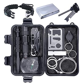 Emergency survival kit 36 in 1 survival gear tool kit sos survival tool emergency blanket tactical pen flashlight pliers wire saw for wilderness camping hiking first aid survival kit for earthquake.