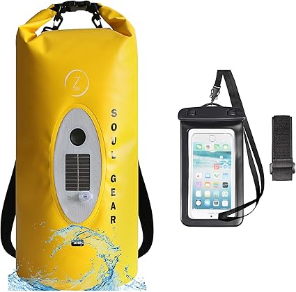 Waterproof Dry Bag Backpack Roll Top Dry Sack Ipx8 Phone Case Usb Solar Bluetooth Speaker By Soul Gear Provides Music Keeps Camping Gear Dry