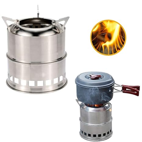 Wood Burning Portable Camping Stove Outdoor Backpacking Hiking Stove Lightweight Stainless Steel Alcohol Camp Stove Camping Cook Set Camping Toilet