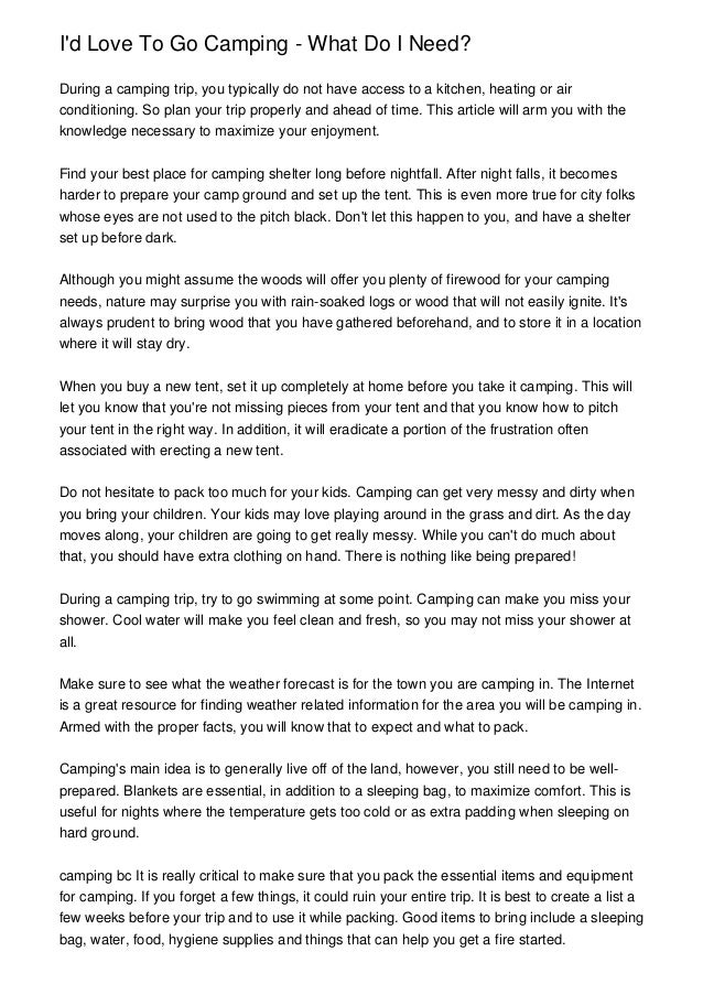 I D Love To Go Camping What Do I Need