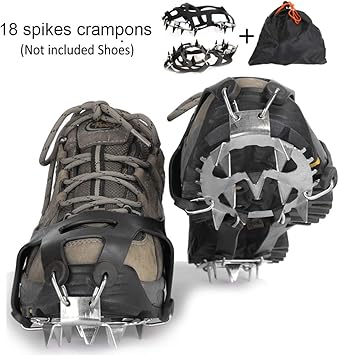 Puoyis Ice Snow Cleats Crampons For Shoes Boots Shoes Spikes Anti Slip Traction Grips For Winter Hiking Fishing Walking Climbing Jogging