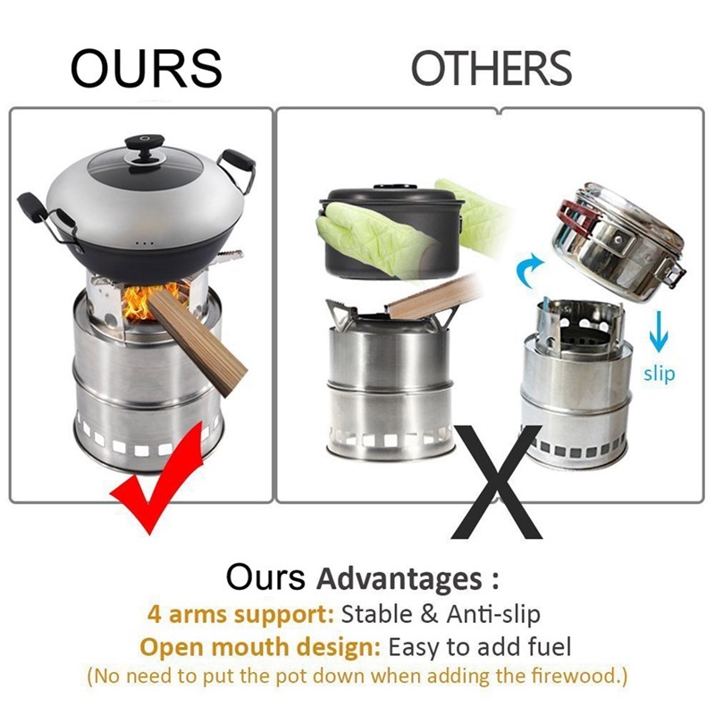 Stainless Steel Camping Stove Wood Burning Stove Cooker Outdoor Oven Camping F